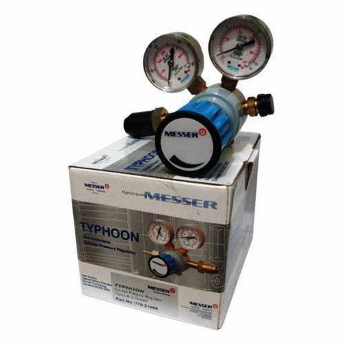 Overview: Messer Typhoon Propane Regulator regulates propane gas at 25/2.5 bar. Built for heavy-duty flame cutting and heating.